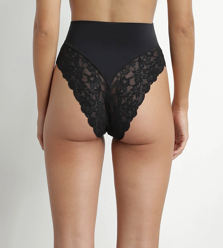 The DIM SILHOUETTE DENTELLE high-waisted thong gently shapes your silhouette while emphasizing sensuality. Microfiber and soft lace ensure perfect and optimal comfort all day long.